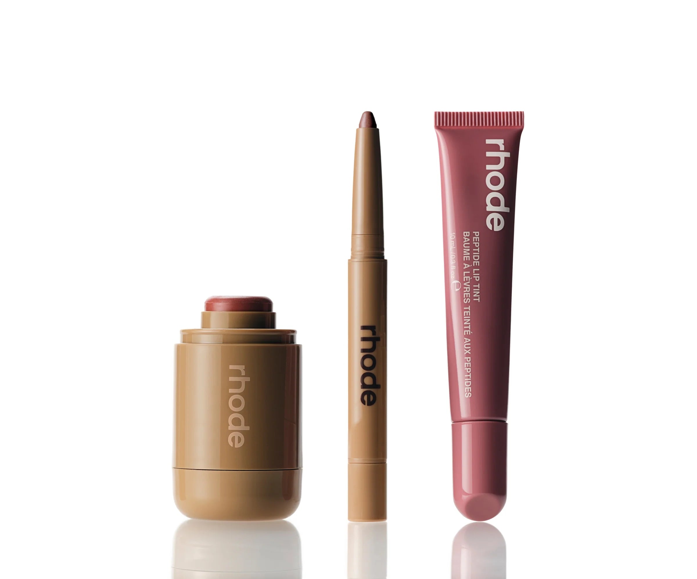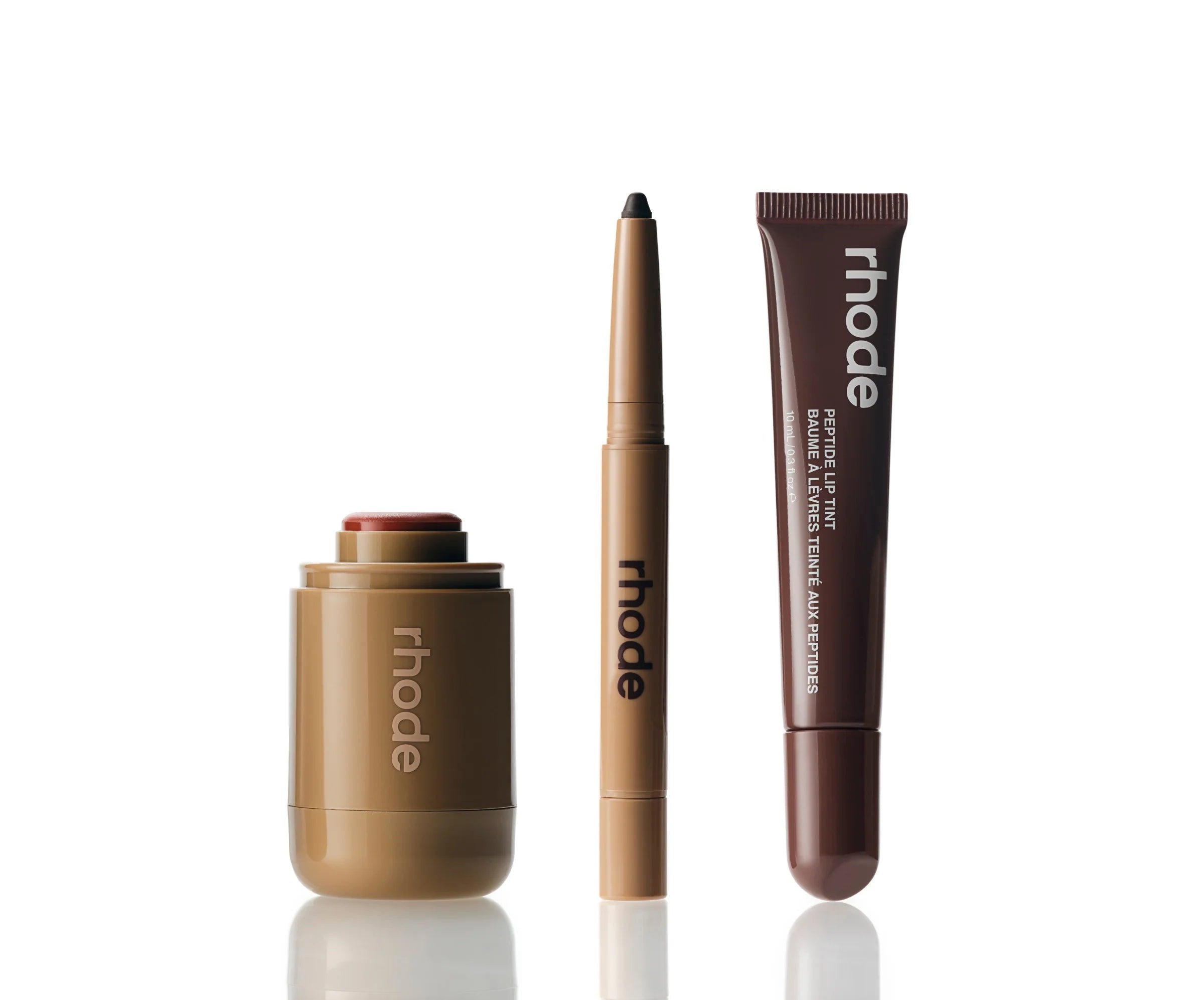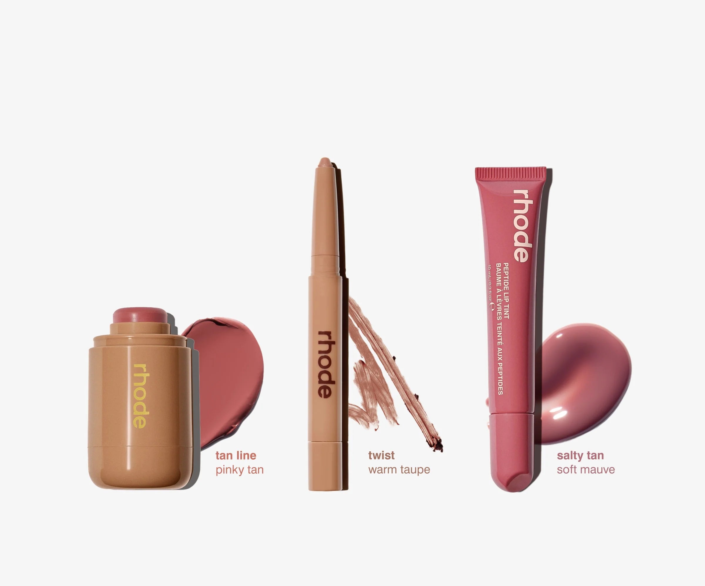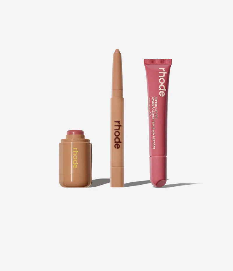 Includes 3 full size products: Pocket Blush in Tan Line, Peptide Lip Shape in Twist, and Peptide Lip Tint in Salty Tan.