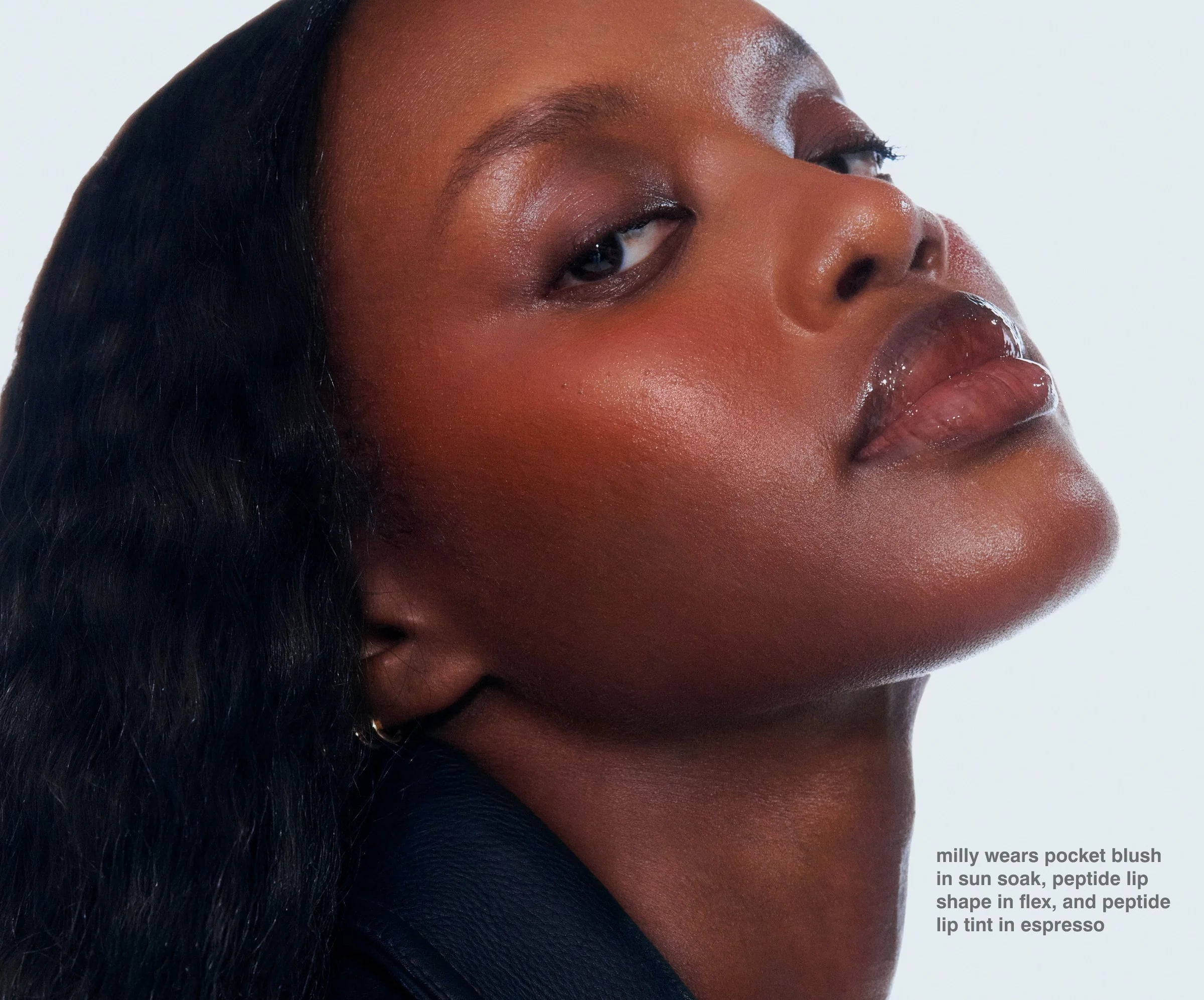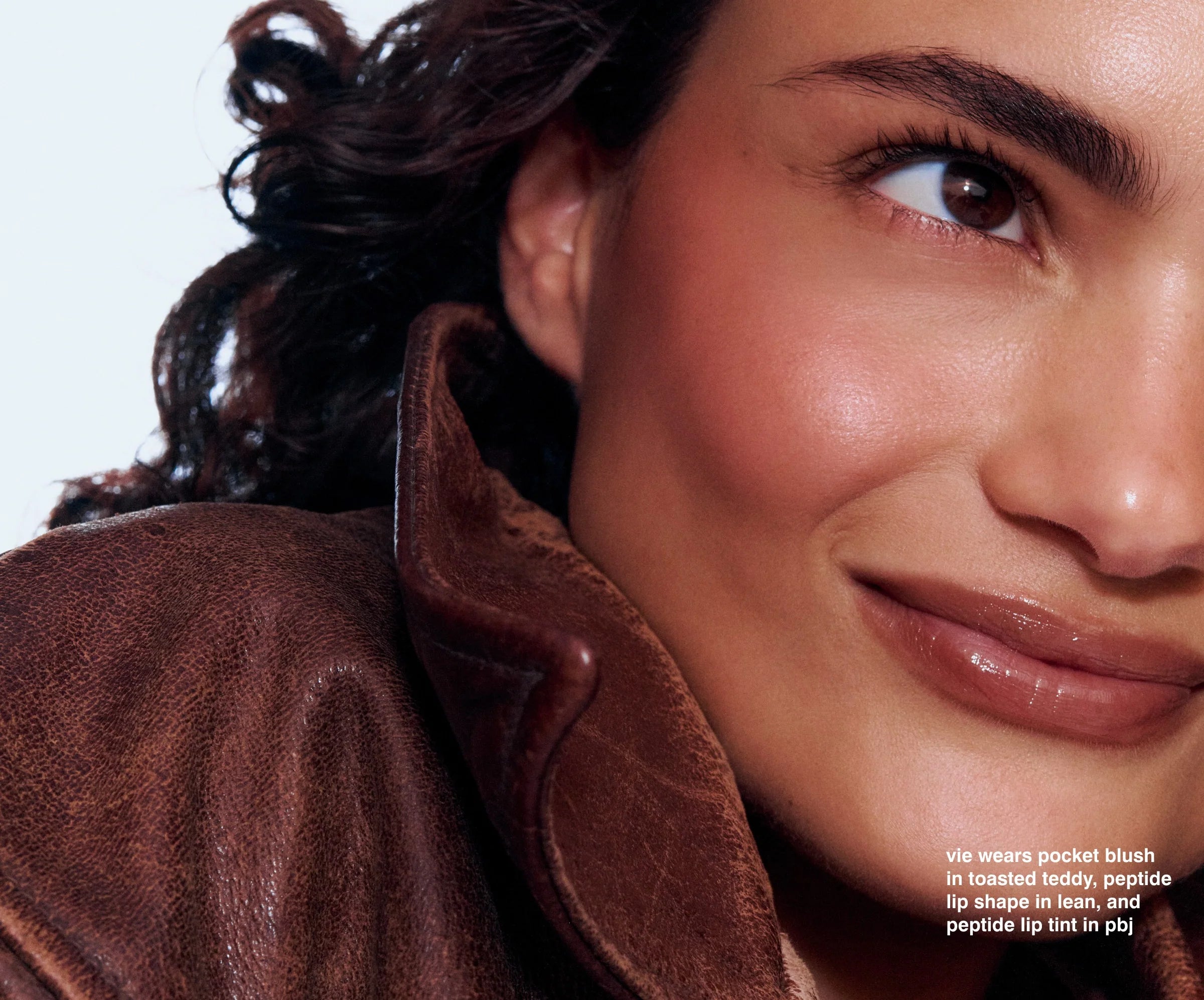 Curated pairings of blush and lip shades for an effortless look with skincare benefits. Pocket Blush wakes up cheeks and lips with a satiny, diffused flush and hydrates skin for baby-soft cheeks. Peptide Lip Shape softly contours lips and visibly enhances lip volume. Peptide Lip Tint melts onto lips for a nourishing hint of tint and a rich, glossy finish.
