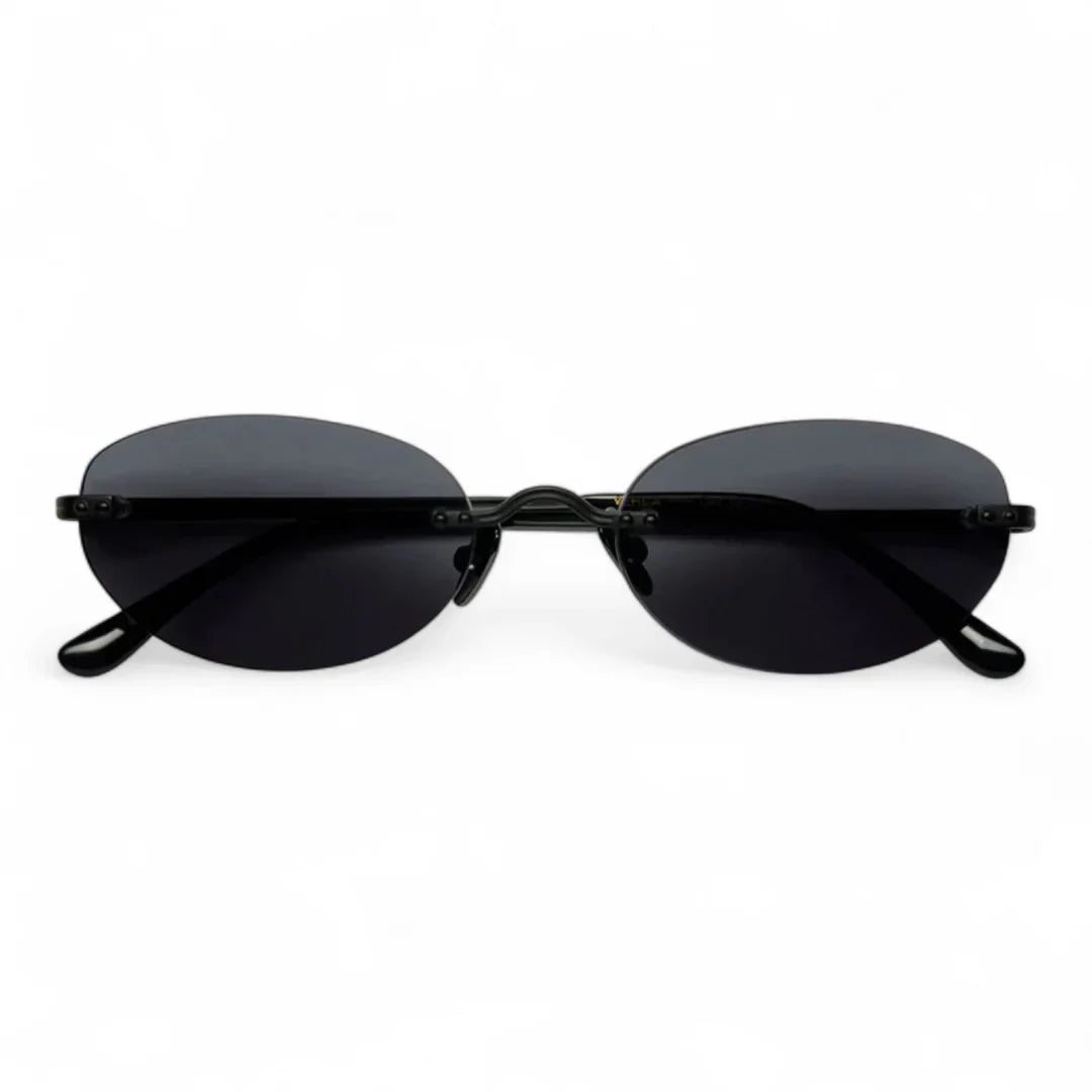 Introducing VEHLA's new offering, the Cleo, a rimless style with a sleek, black metal frame and oval-shaped lenses. This new design offers a sleek , minimalist look, making it ideal for those who prefer smaller sunglass frames.