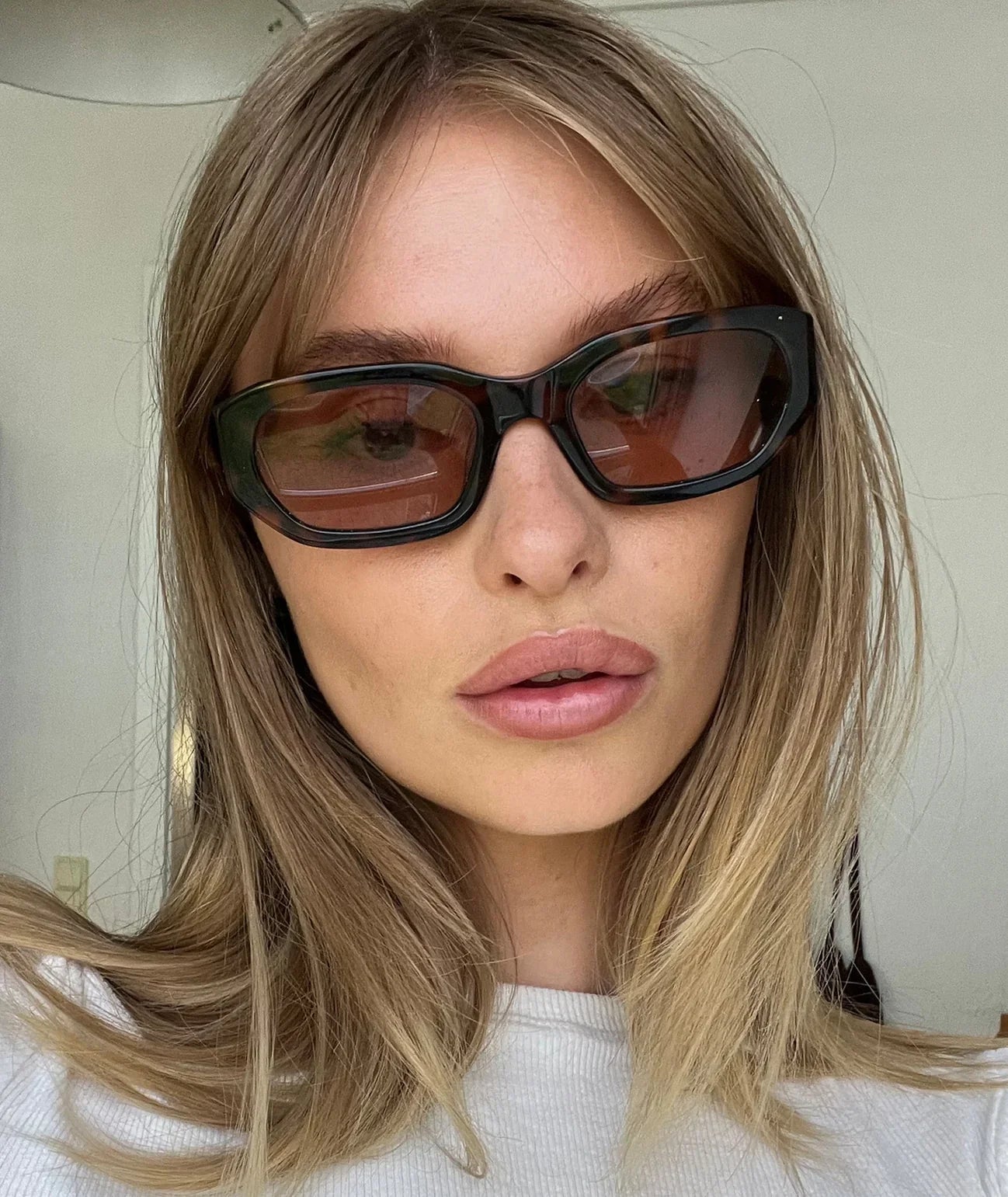 Featuring a sharp chocolate tortoise acetate frame, this model is finished with toffee lenses.