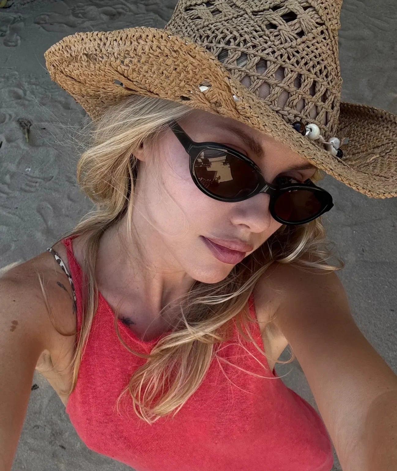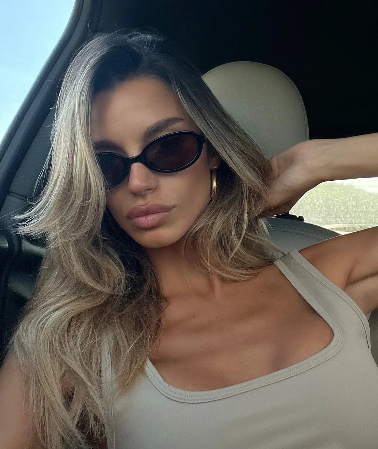 Here's June . With its sleek black oval frame and chocolate-toned lenses, it offers a classic style that goes with everything. From morning workouts to late lunches, it's with you wherever you go. Pair it with the VEHLA activewear set for a complete look.